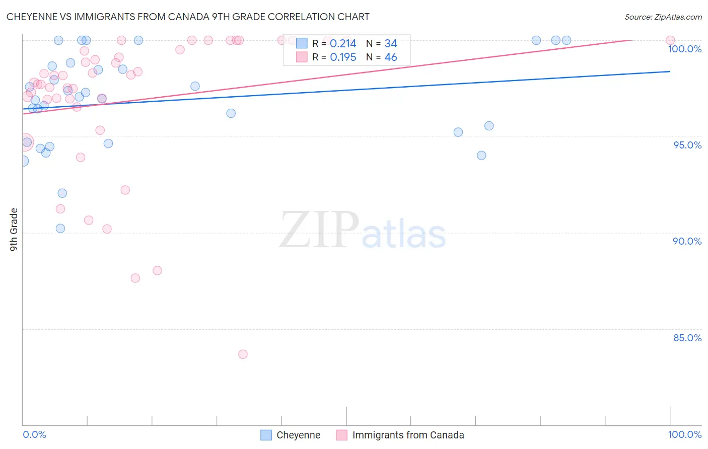 Cheyenne vs Immigrants from Canada 9th Grade Correlation Chart