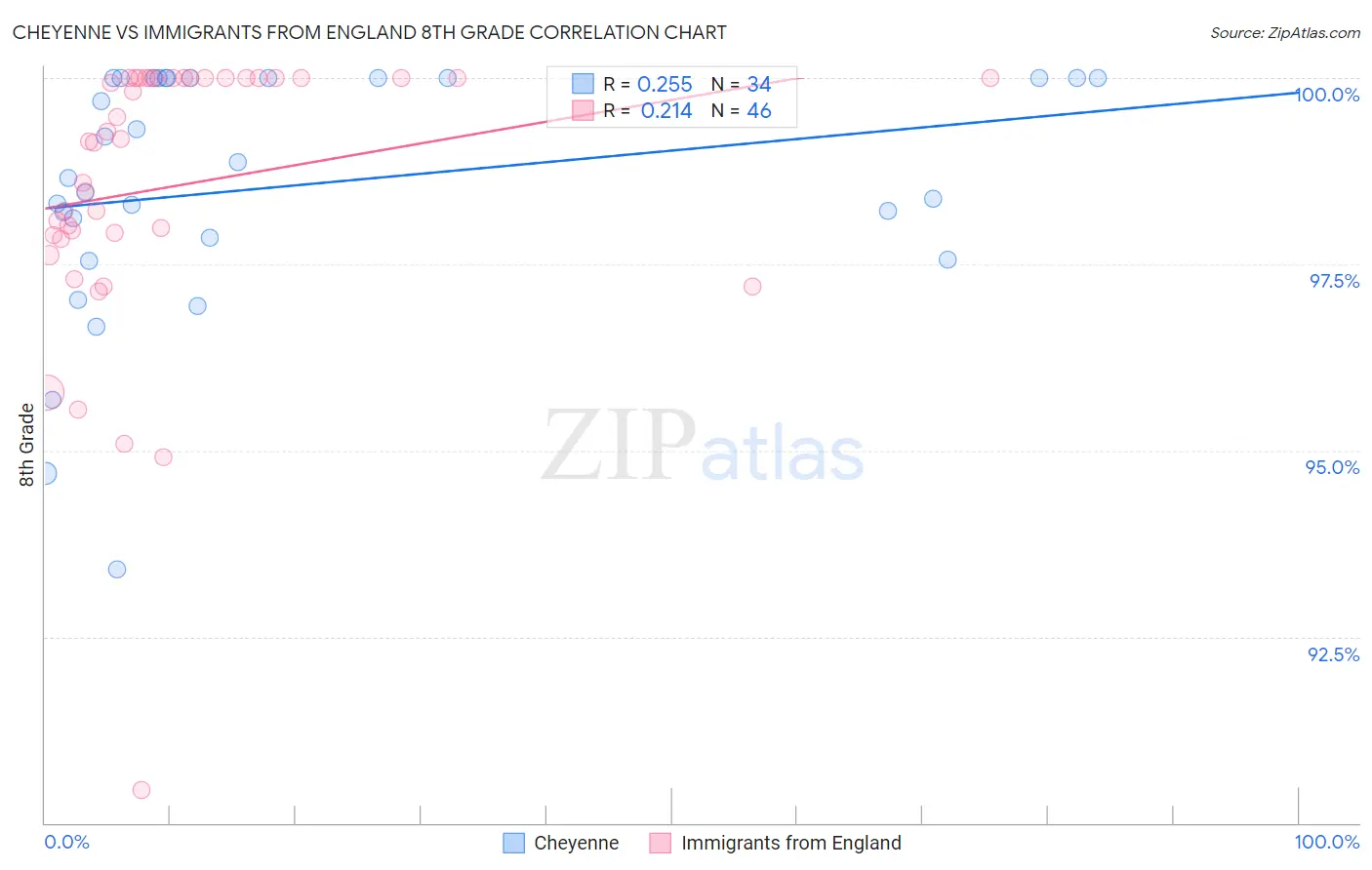 Cheyenne vs Immigrants from England 8th Grade Correlation Chart