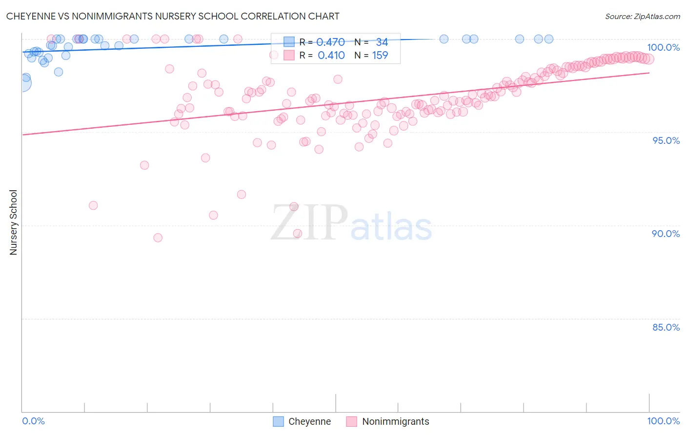 Cheyenne vs Nonimmigrants Nursery School Correlation Chart