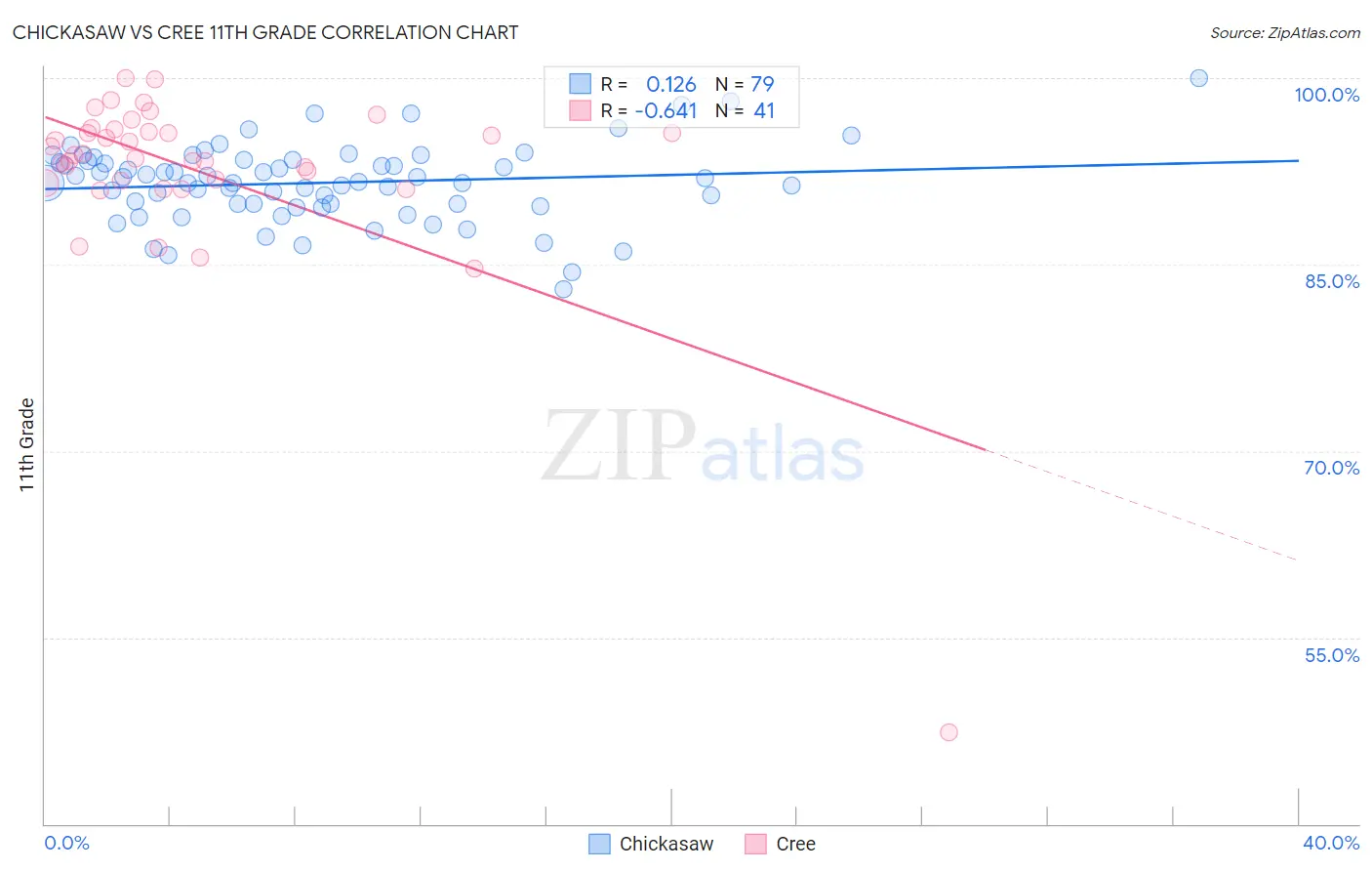 Chickasaw vs Cree 11th Grade Correlation Chart