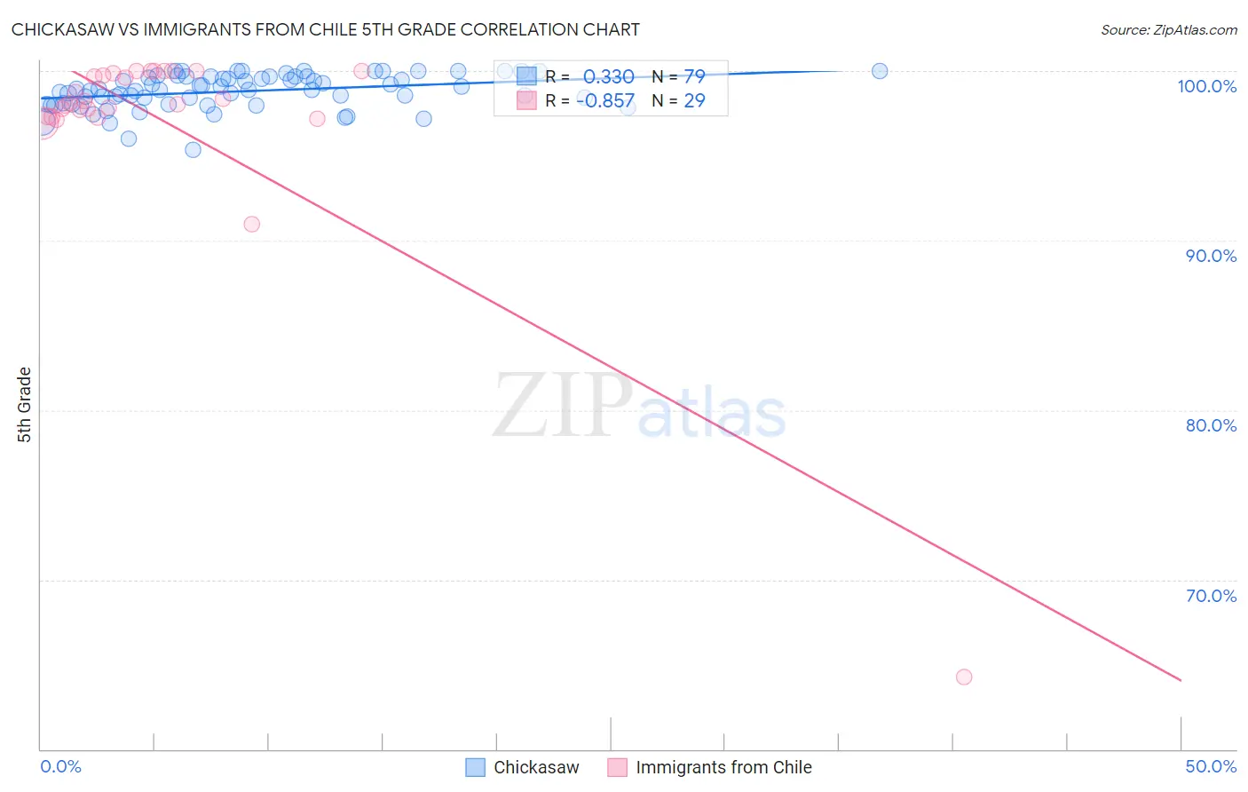Chickasaw vs Immigrants from Chile 5th Grade Correlation Chart