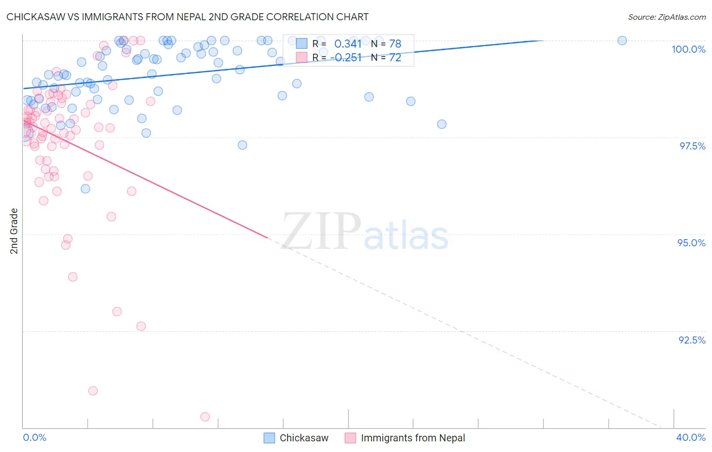 Chickasaw vs Immigrants from Nepal 2nd Grade Correlation Chart