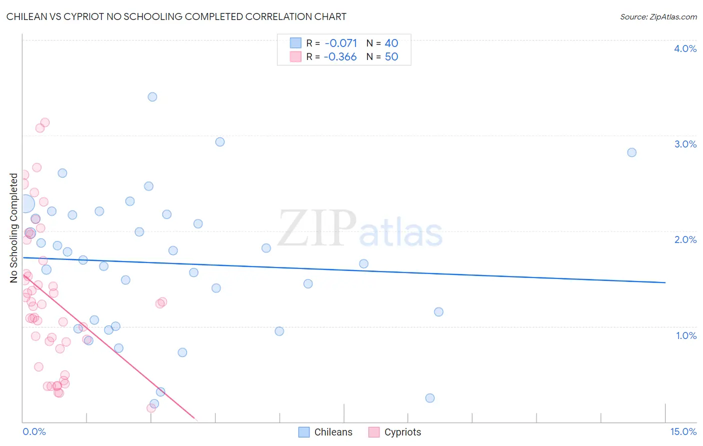 Chilean vs Cypriot No Schooling Completed Correlation Chart