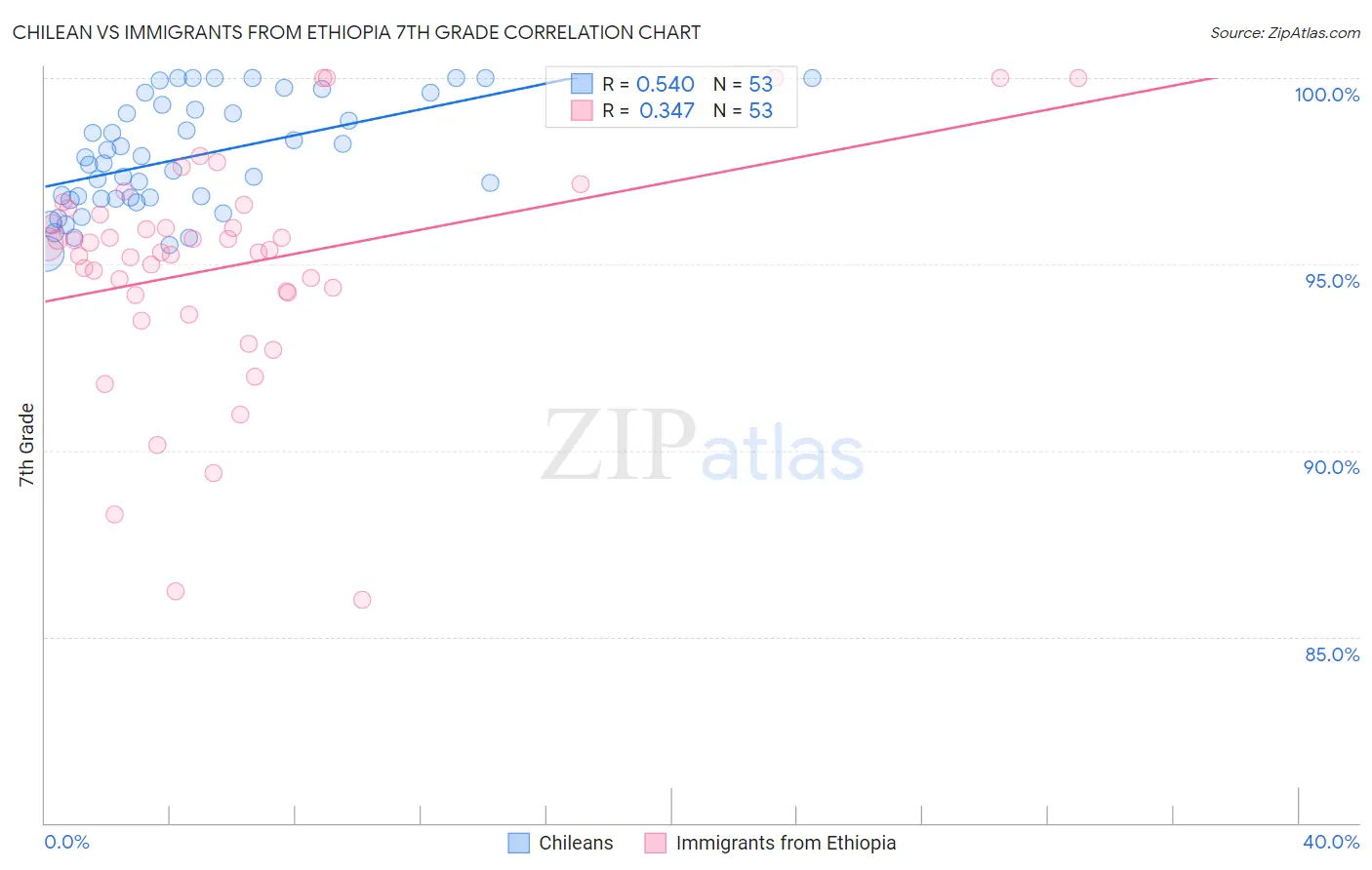 Chilean vs Immigrants from Ethiopia 7th Grade Correlation Chart
