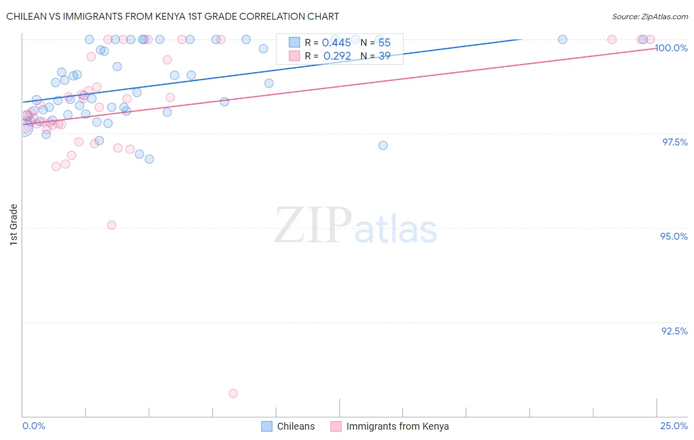 Chilean vs Immigrants from Kenya 1st Grade Correlation Chart