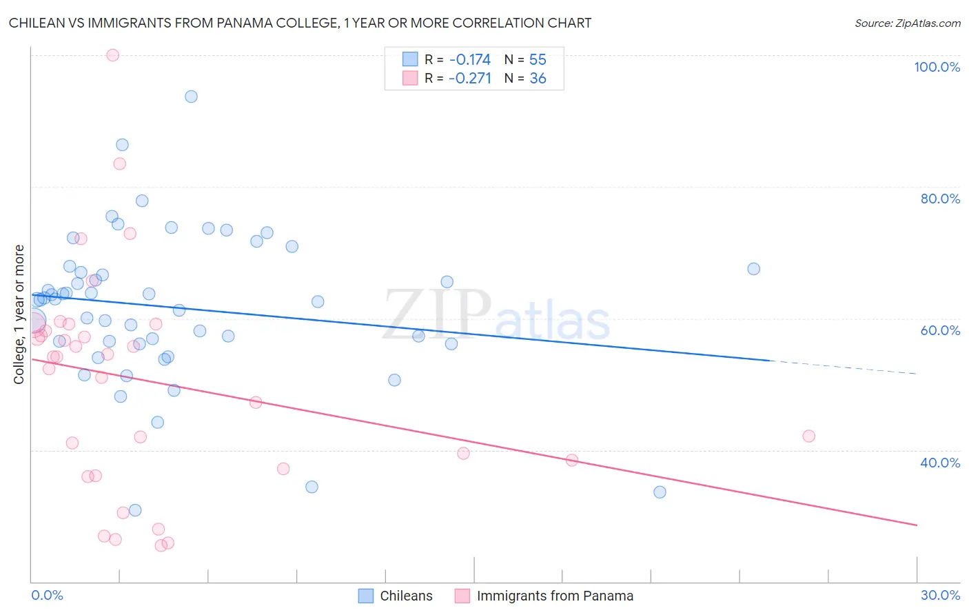 Chilean vs Immigrants from Panama College, 1 year or more