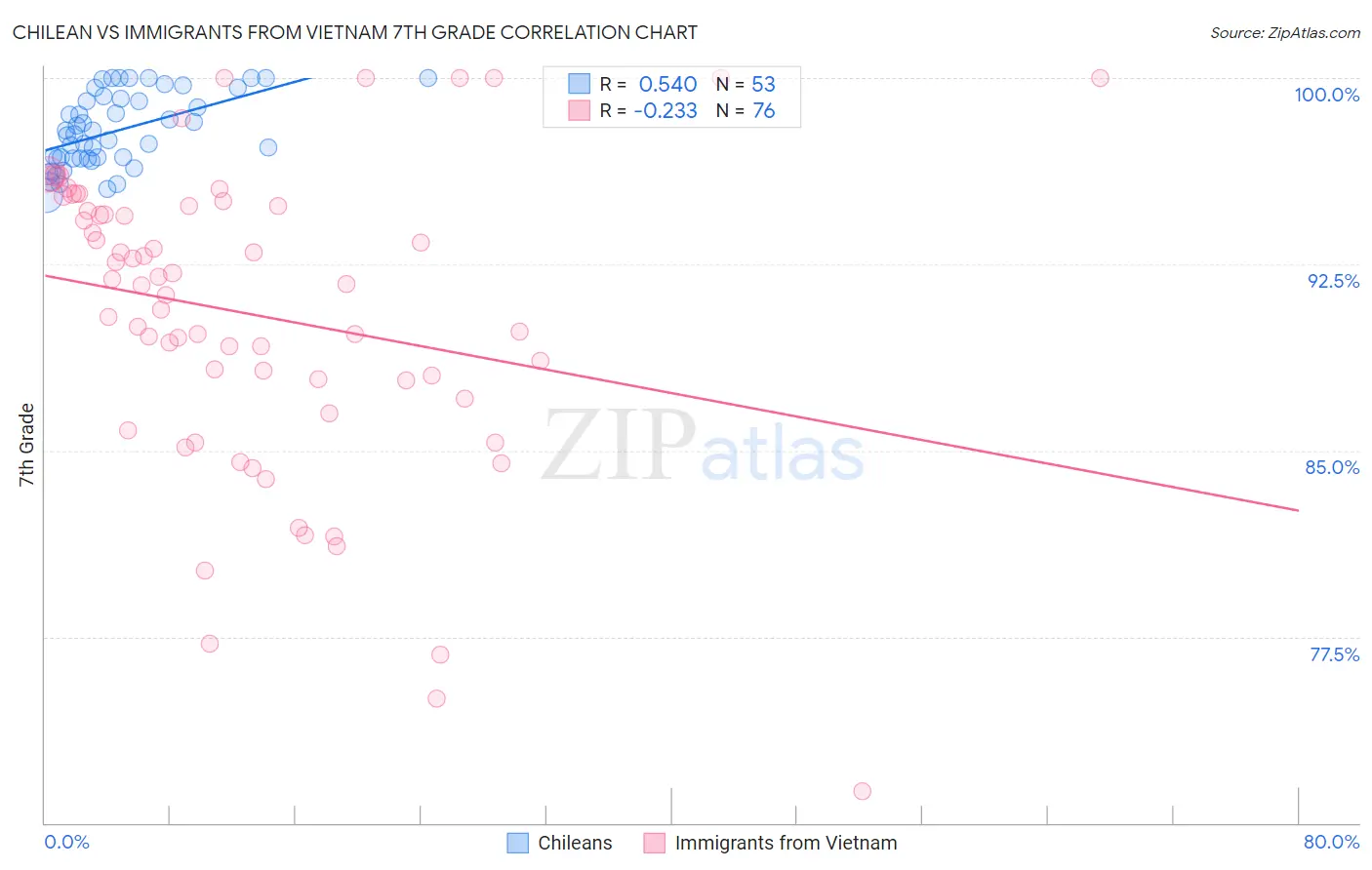 Chilean vs Immigrants from Vietnam 7th Grade Correlation Chart