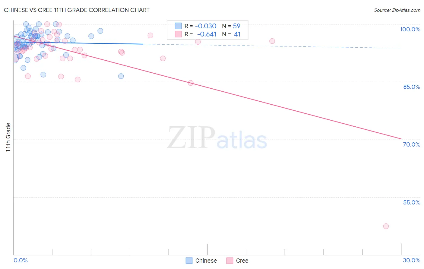 Chinese vs Cree 11th Grade Correlation Chart