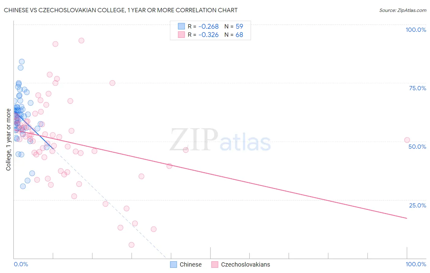 Chinese vs Czechoslovakian College, 1 year or more Correlation Chart