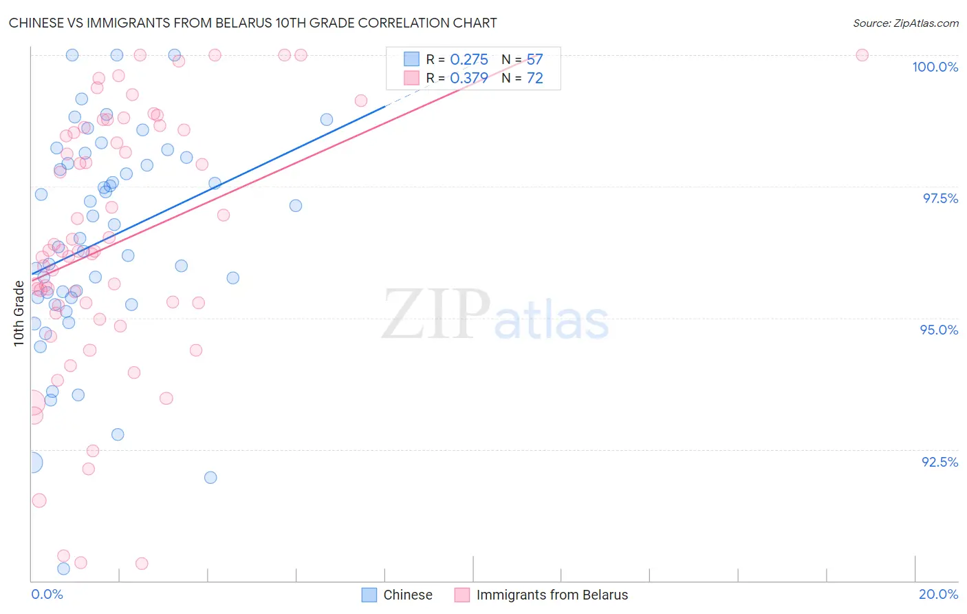 Chinese vs Immigrants from Belarus 10th Grade Correlation Chart