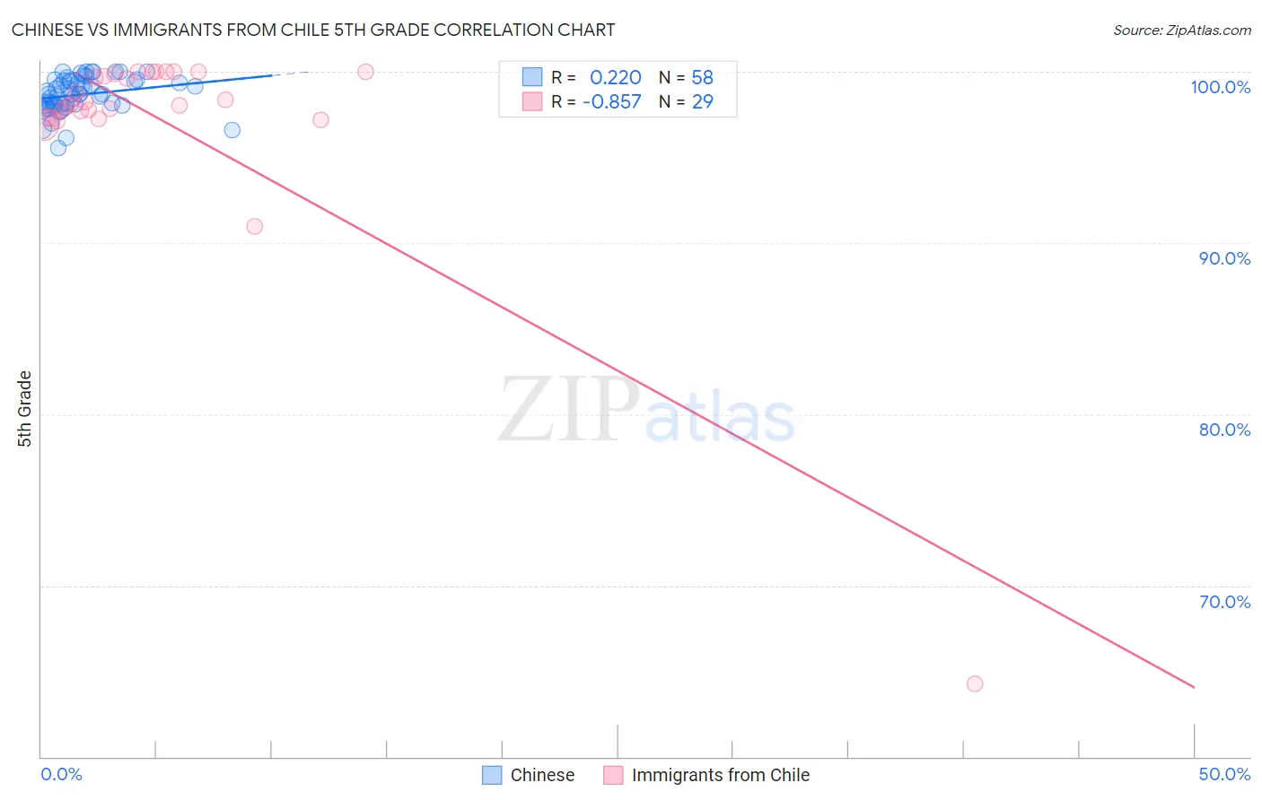 Chinese vs Immigrants from Chile 5th Grade Correlation Chart