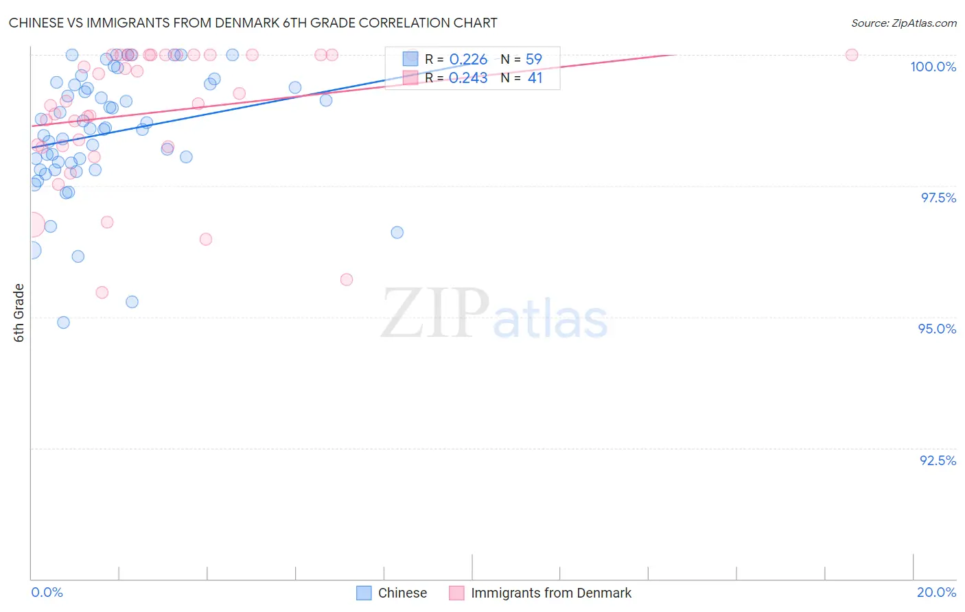 Chinese vs Immigrants from Denmark 6th Grade Correlation Chart