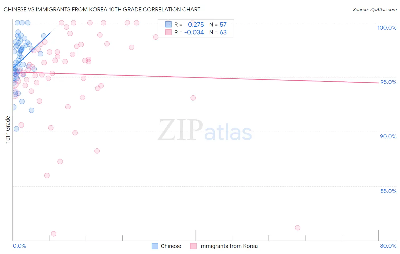 Chinese vs Immigrants from Korea 10th Grade Correlation Chart