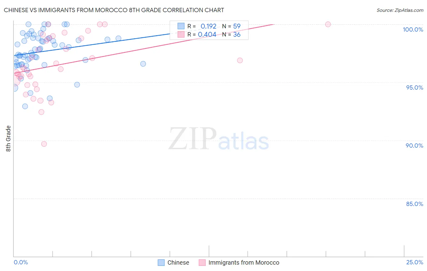 Chinese vs Immigrants from Morocco 8th Grade Correlation Chart