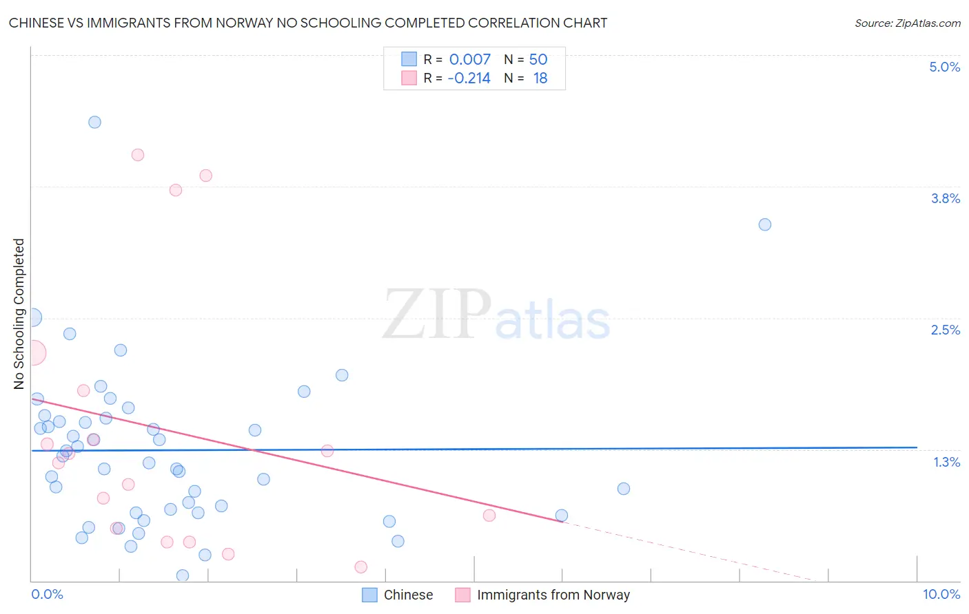 Chinese vs Immigrants from Norway No Schooling Completed