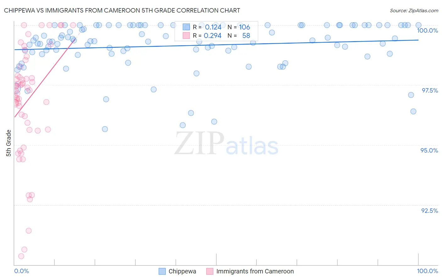 Chippewa vs Immigrants from Cameroon 5th Grade Correlation Chart