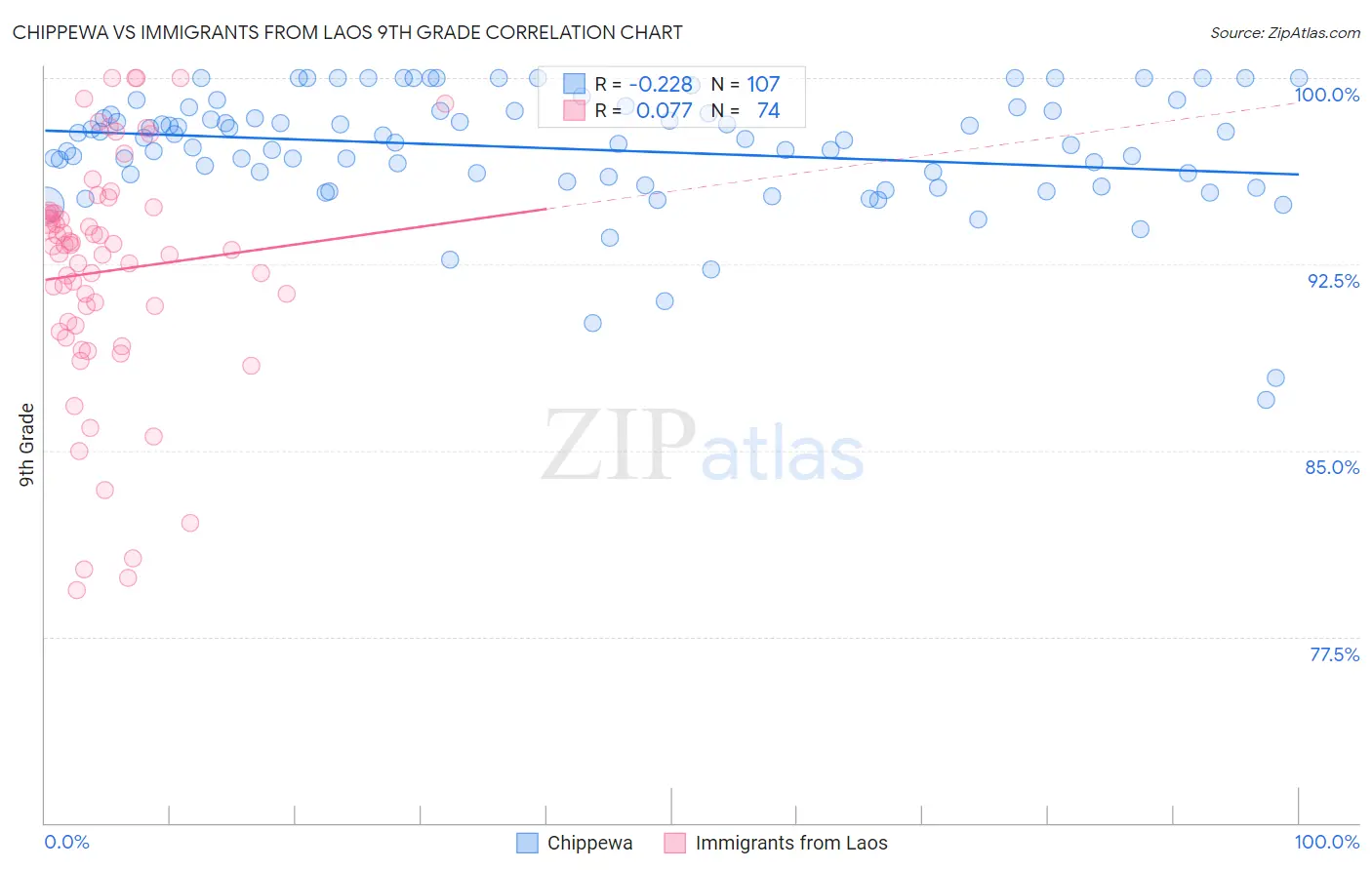 Chippewa vs Immigrants from Laos 9th Grade Correlation Chart