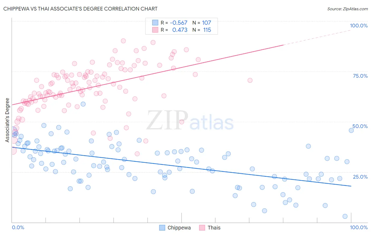 Chippewa vs Thai Associate's Degree Correlation Chart