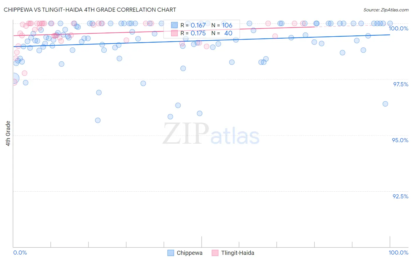 Chippewa vs Tlingit-Haida 4th Grade Correlation Chart