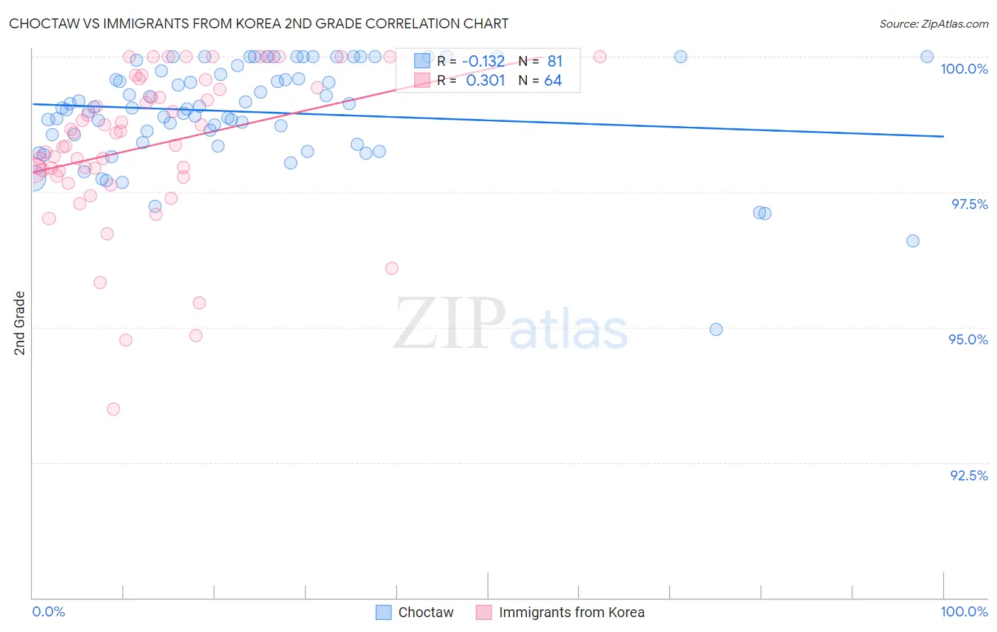Choctaw vs Immigrants from Korea 2nd Grade Correlation Chart