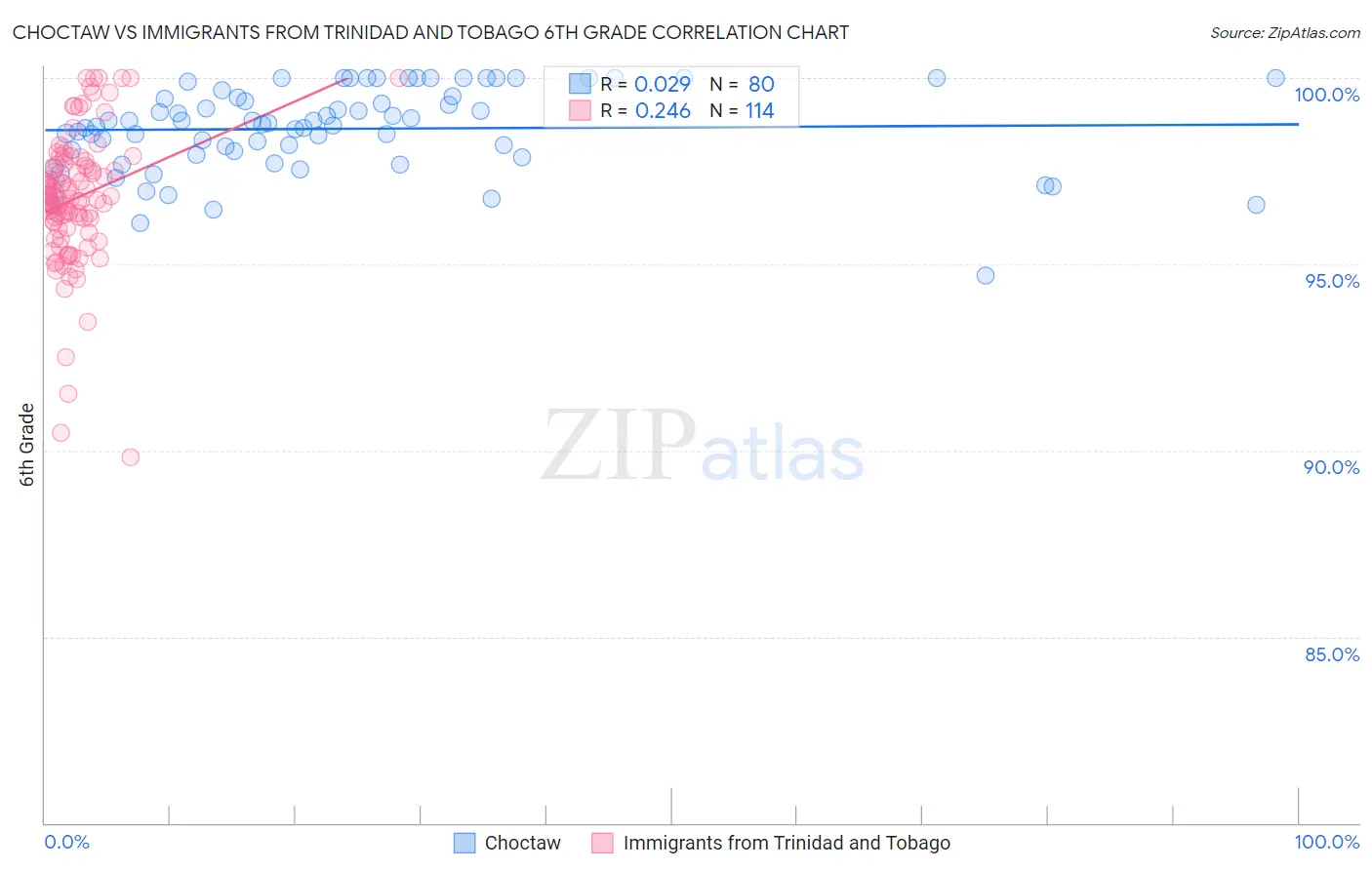 Choctaw vs Immigrants from Trinidad and Tobago 6th Grade Correlation Chart