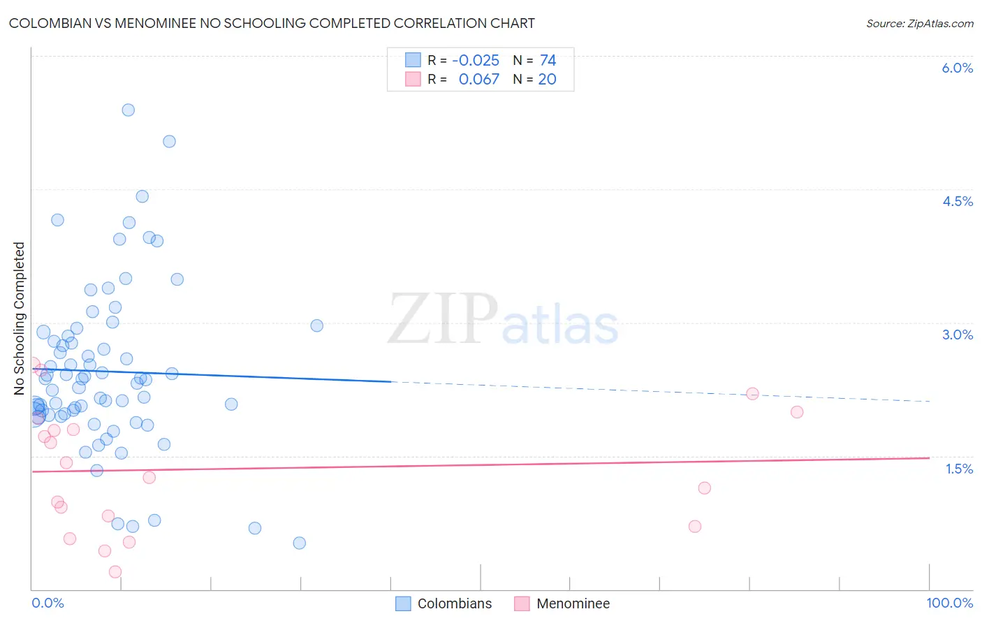 Colombian vs Menominee No Schooling Completed