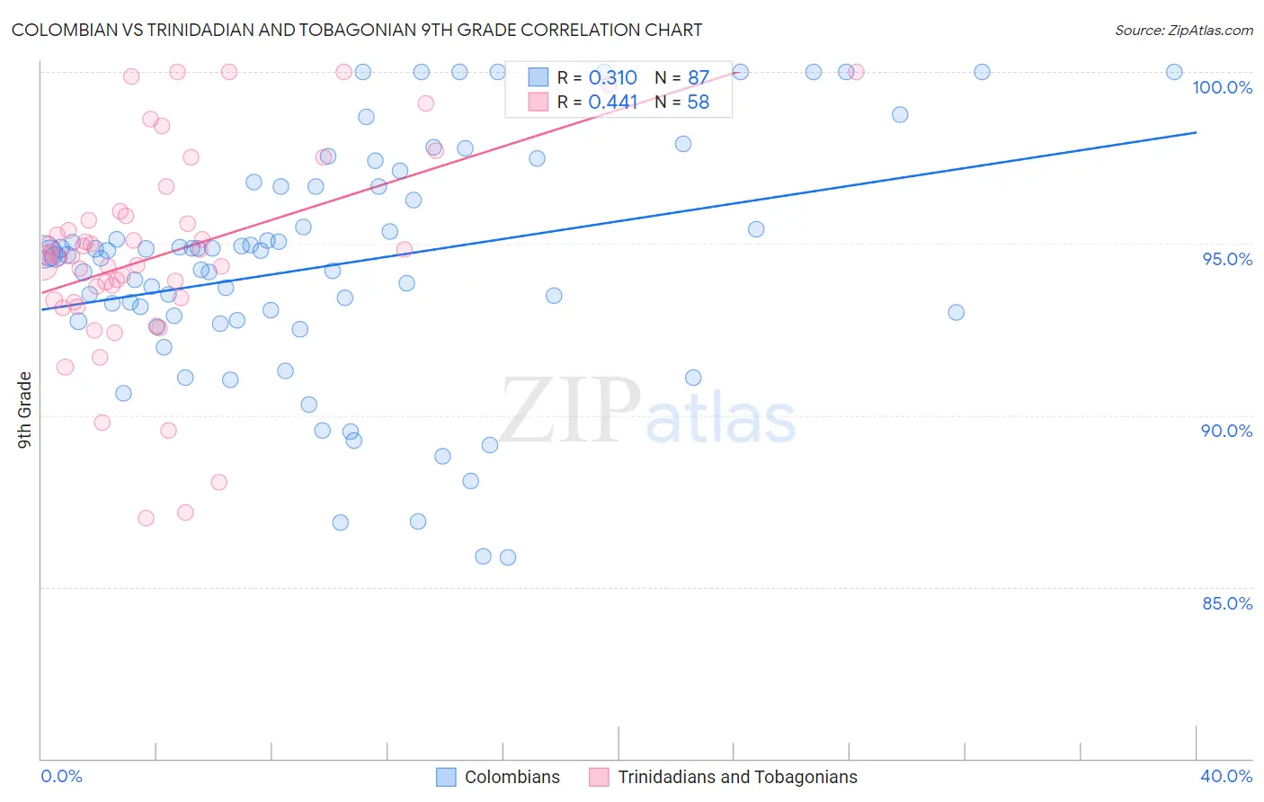 Colombian vs Trinidadian and Tobagonian 9th Grade Correlation Chart