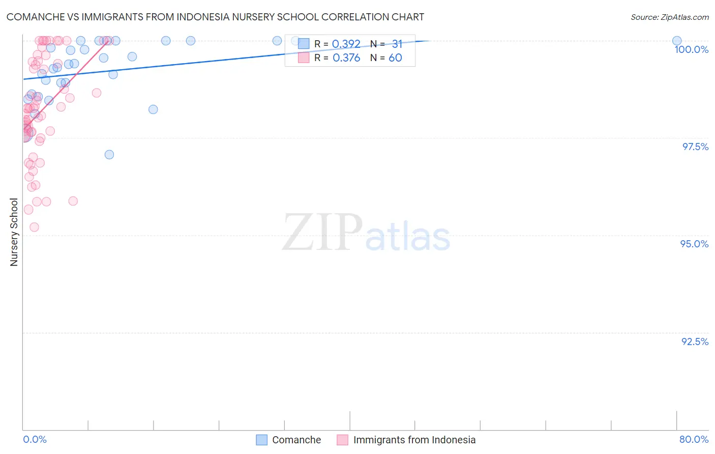 Comanche vs Immigrants from Indonesia Nursery School Correlation Chart