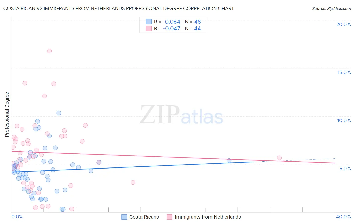 Costa Rican vs Immigrants from Netherlands Professional Degree Correlation Chart