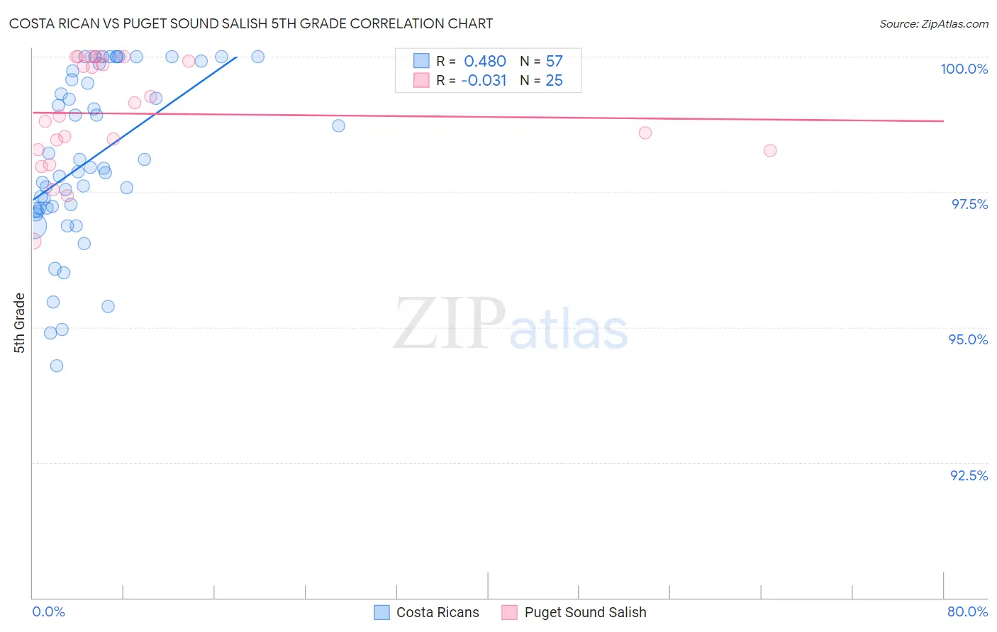 Costa Rican vs Puget Sound Salish 5th Grade Correlation Chart