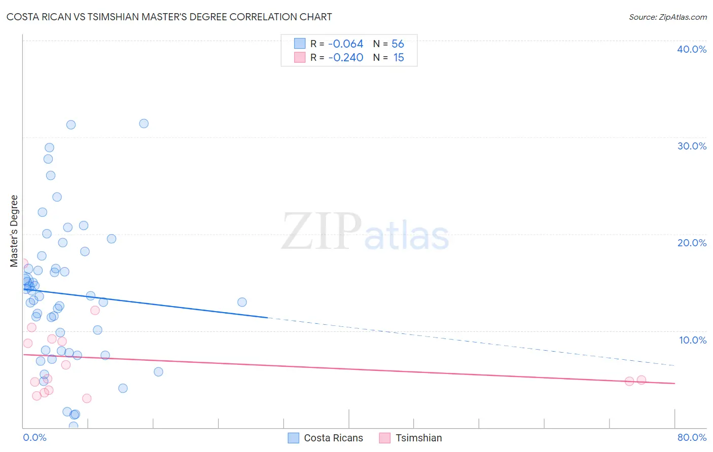 Costa Rican vs Tsimshian Master's Degree Correlation Chart