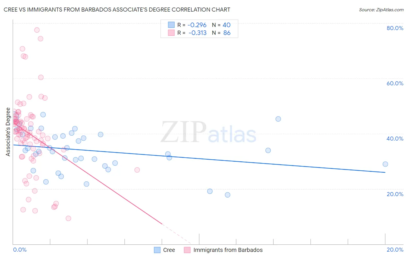 Cree vs Immigrants from Barbados Associate's Degree Correlation Chart