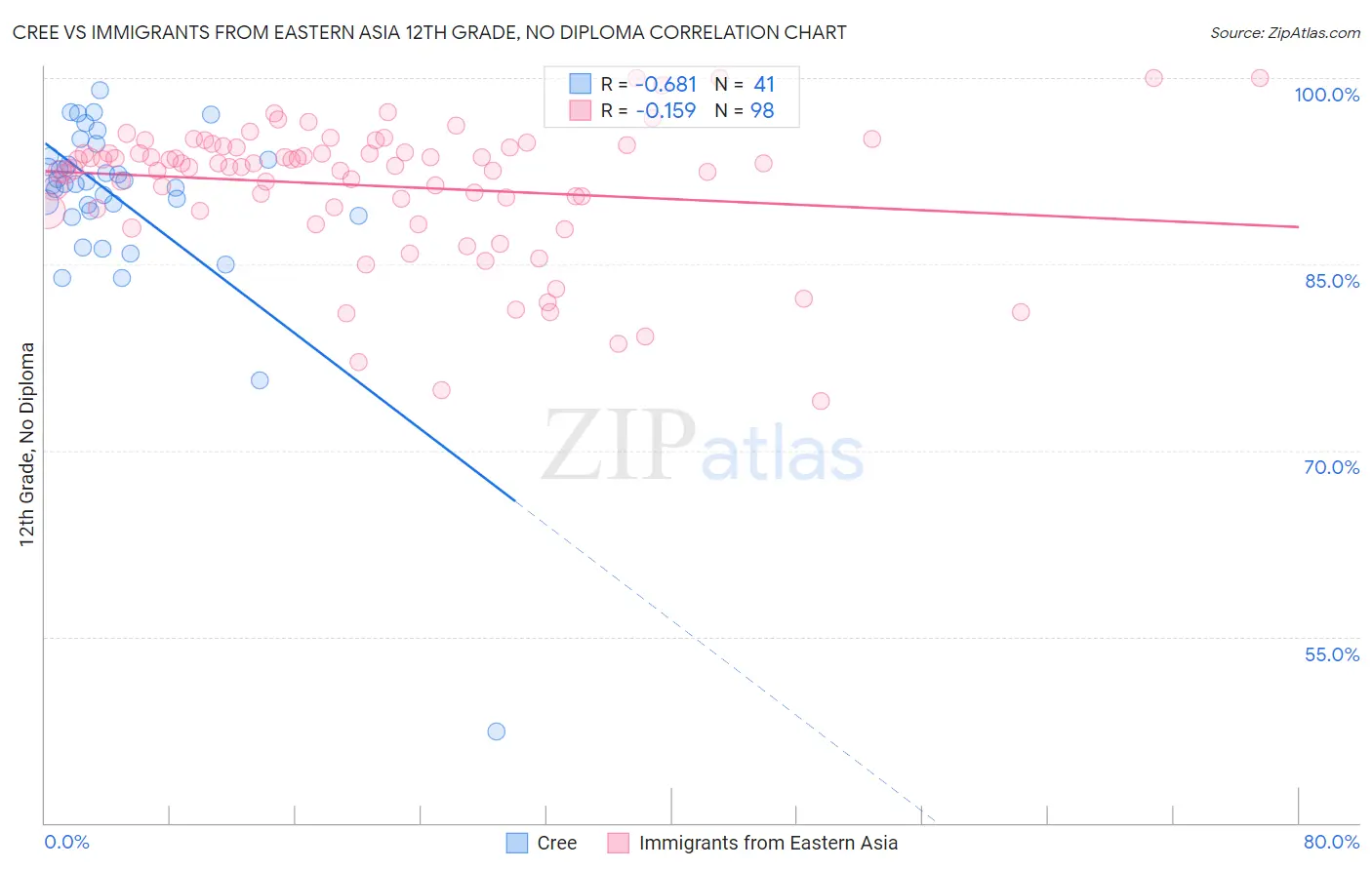 Cree vs Immigrants from Eastern Asia 12th Grade, No Diploma Correlation Chart