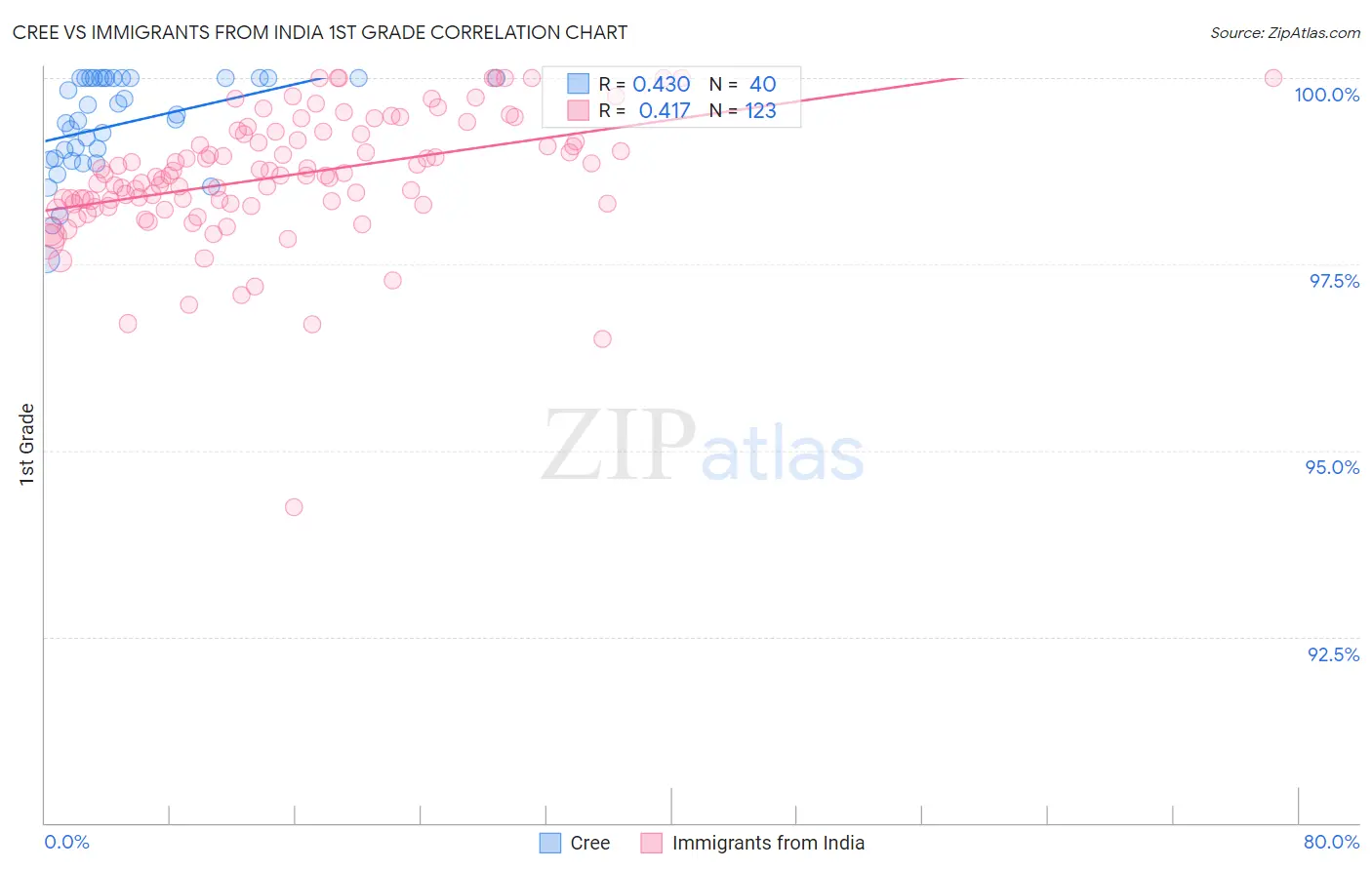 Demographics Similar to Cree and Immigrants from India by 1st Grade