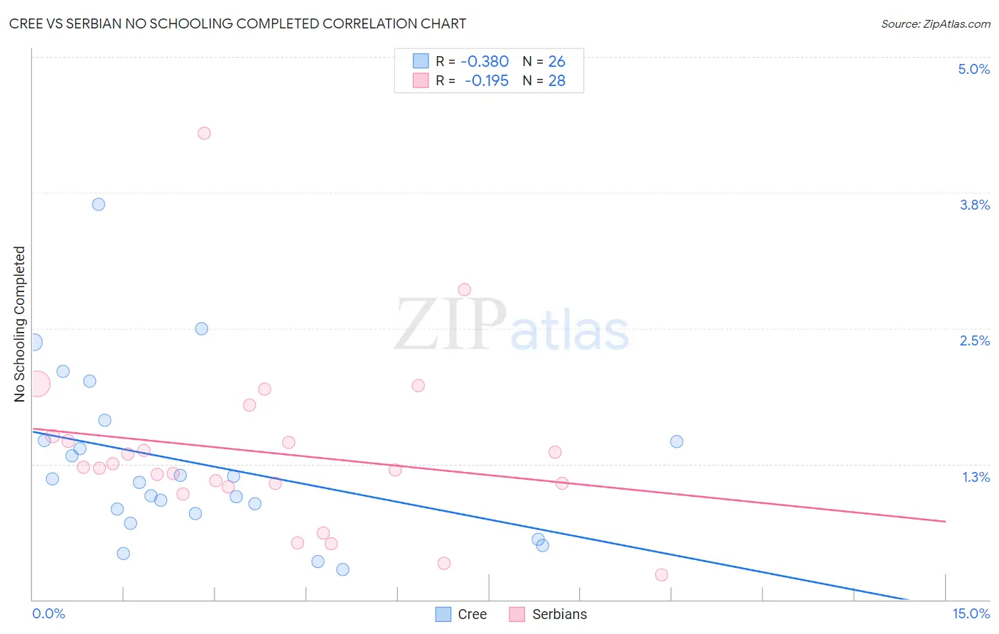 Cree vs Serbian No Schooling Completed Correlation Chart