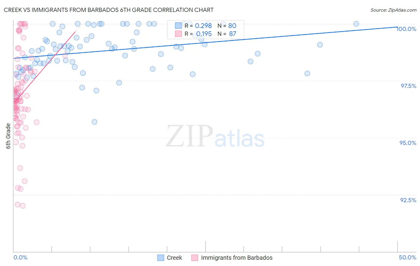 Creek vs Immigrants from Barbados 6th Grade Correlation Chart