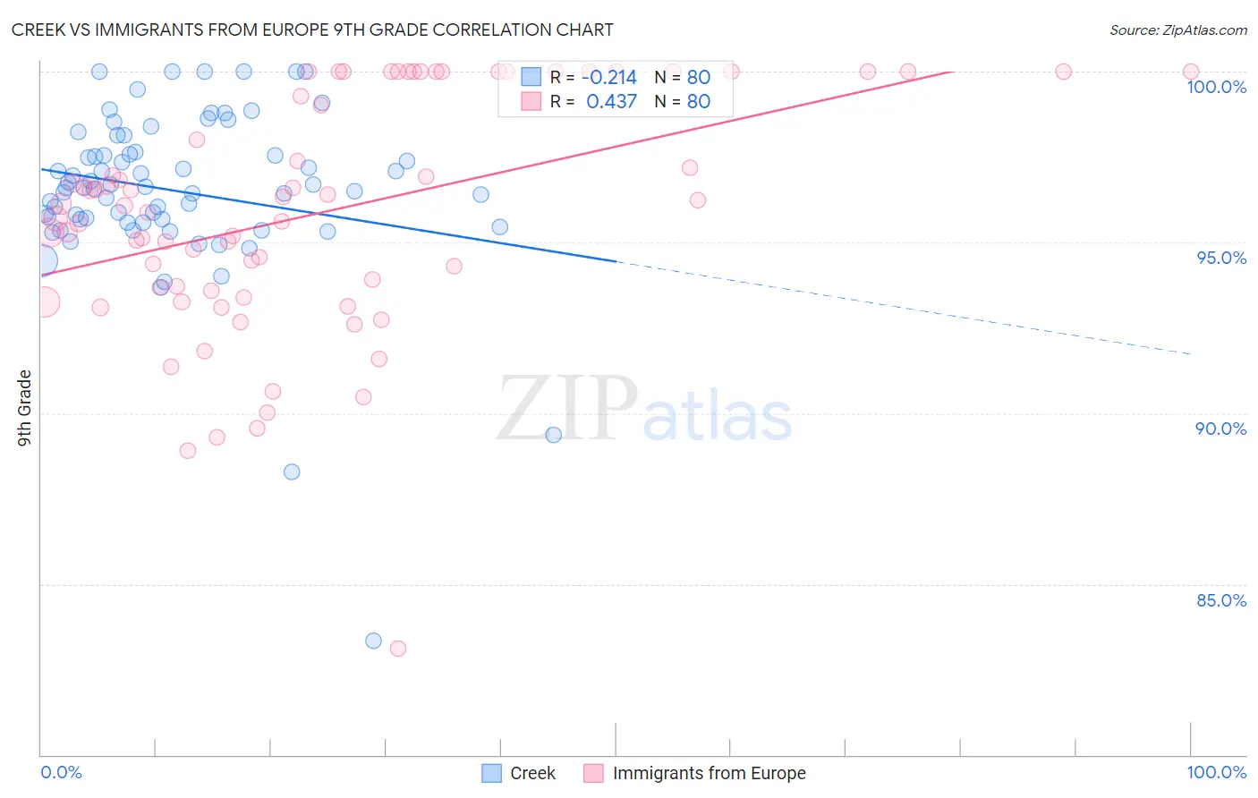 Creek vs Immigrants from Europe 9th Grade Correlation Chart