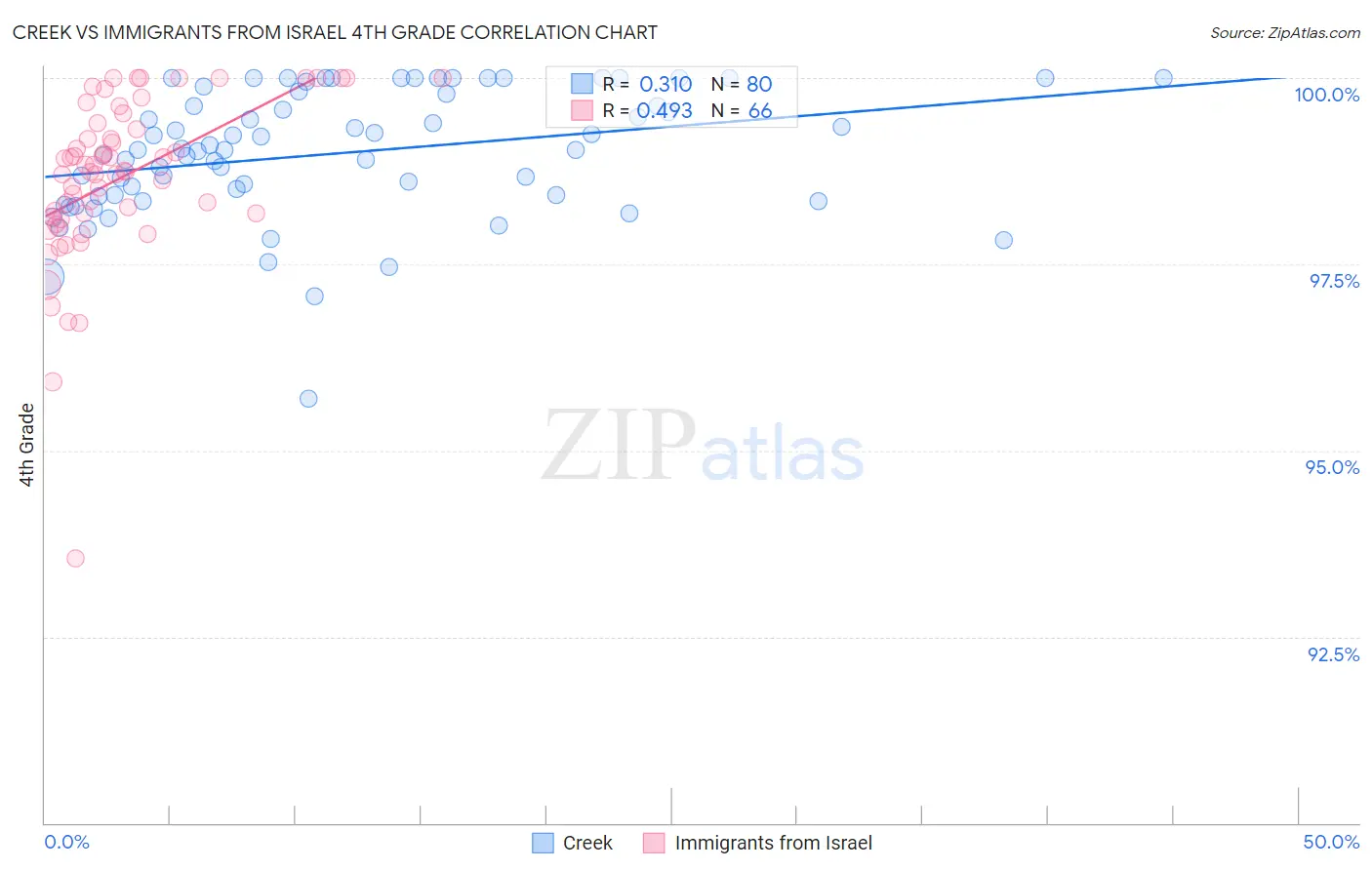 Creek vs Immigrants from Israel 4th Grade Correlation Chart