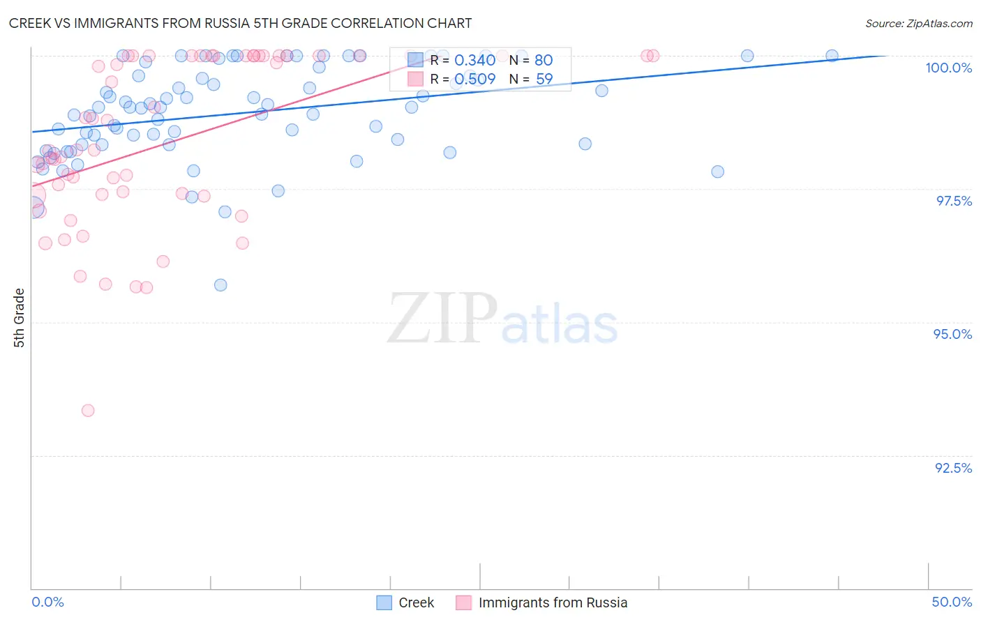 Creek vs Immigrants from Russia 5th Grade Correlation Chart