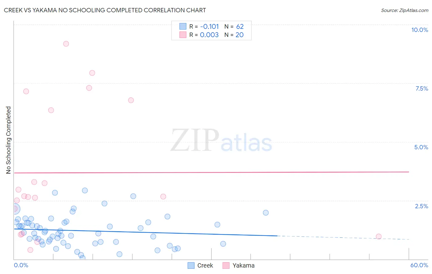 Creek vs Yakama No Schooling Completed Correlation Chart