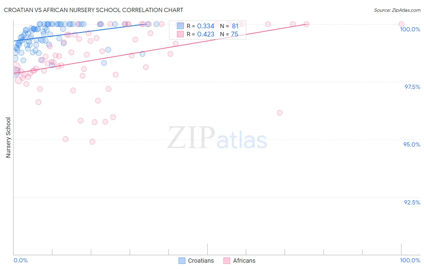 Croatian vs African Nursery School Correlation Chart