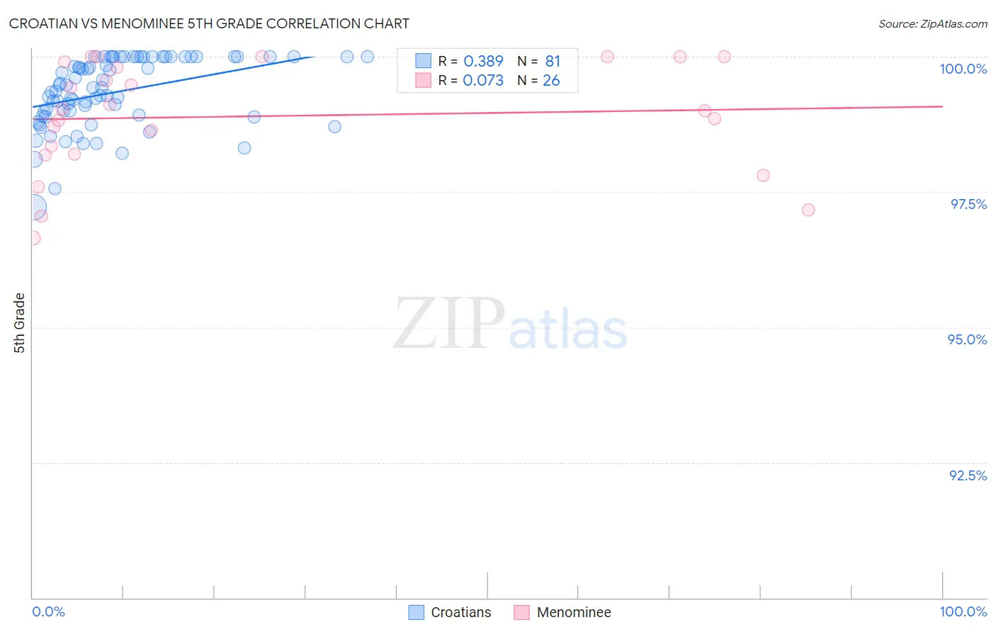 In terms of 5th grade, the demographic groups most similar to Croatians are Sioux (98.2%, a difference of 0.0%), Scotch-Irish (98.2%, a difference of 0.0%), Danish (98.2%, a difference of 0.010%), Yup'ik (98.2%, a difference of 0.010%), and Alaska Native (98.2%, a difference of 0.010%).