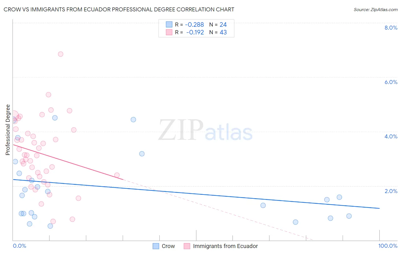 Crow vs Immigrants from Ecuador Professional Degree Correlation Chart