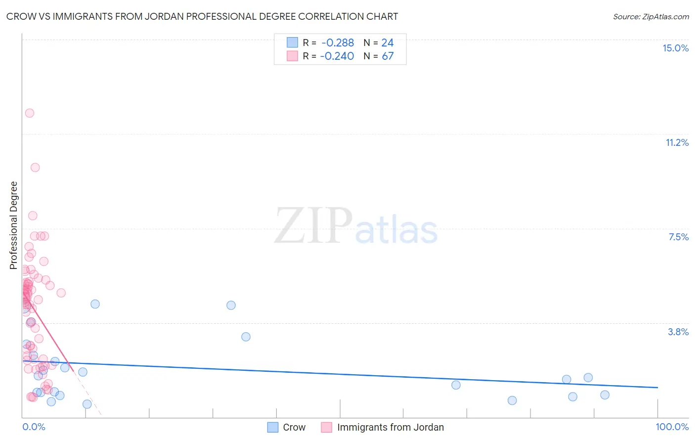 Crow vs Immigrants from Jordan Professional Degree Correlation Chart