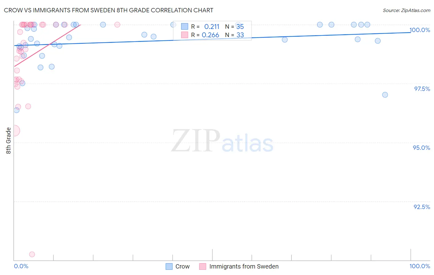 Crow vs Immigrants from Sweden 8th Grade Correlation Chart