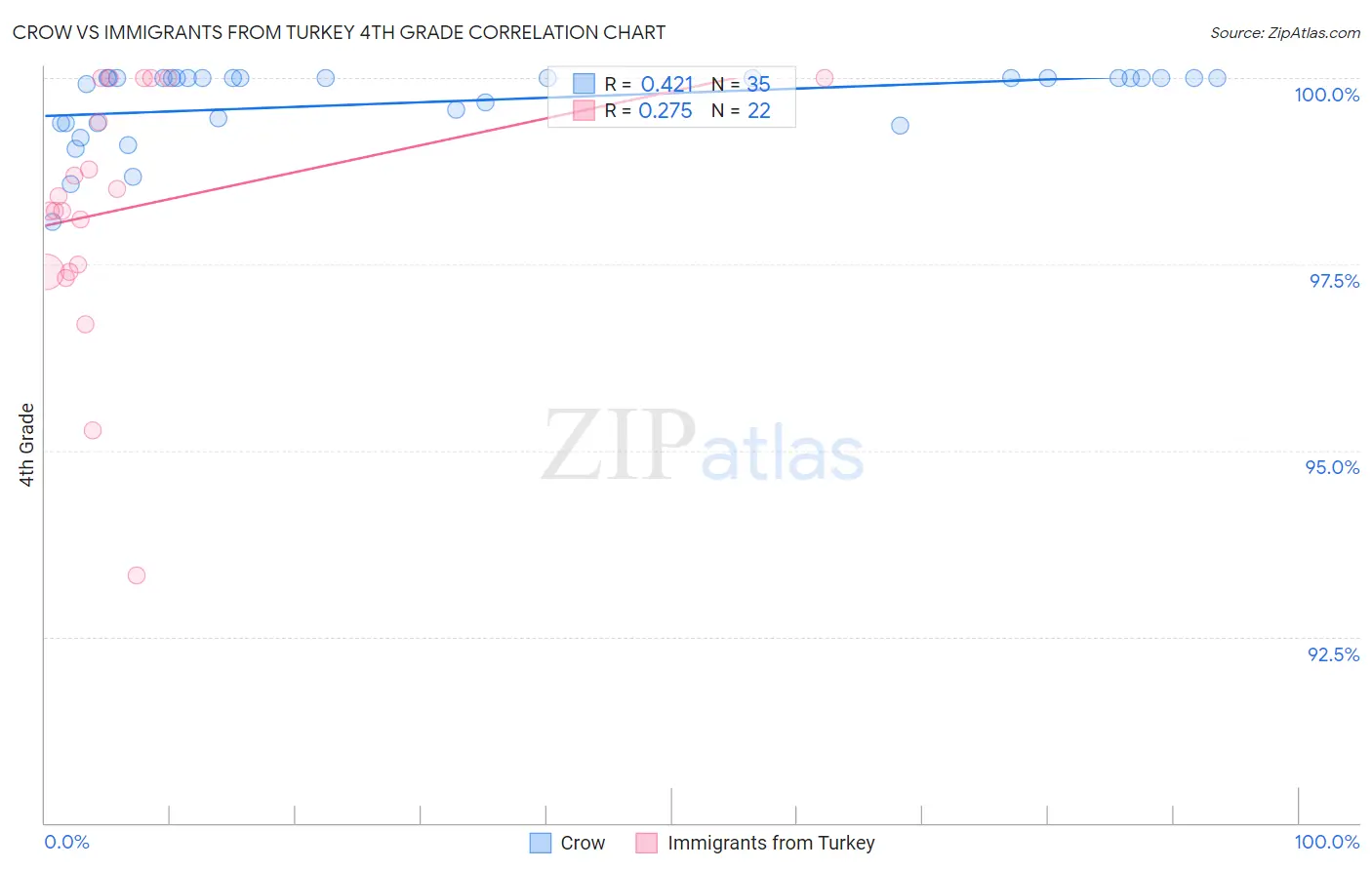 Crow vs Immigrants from Turkey 4th Grade Correlation Chart