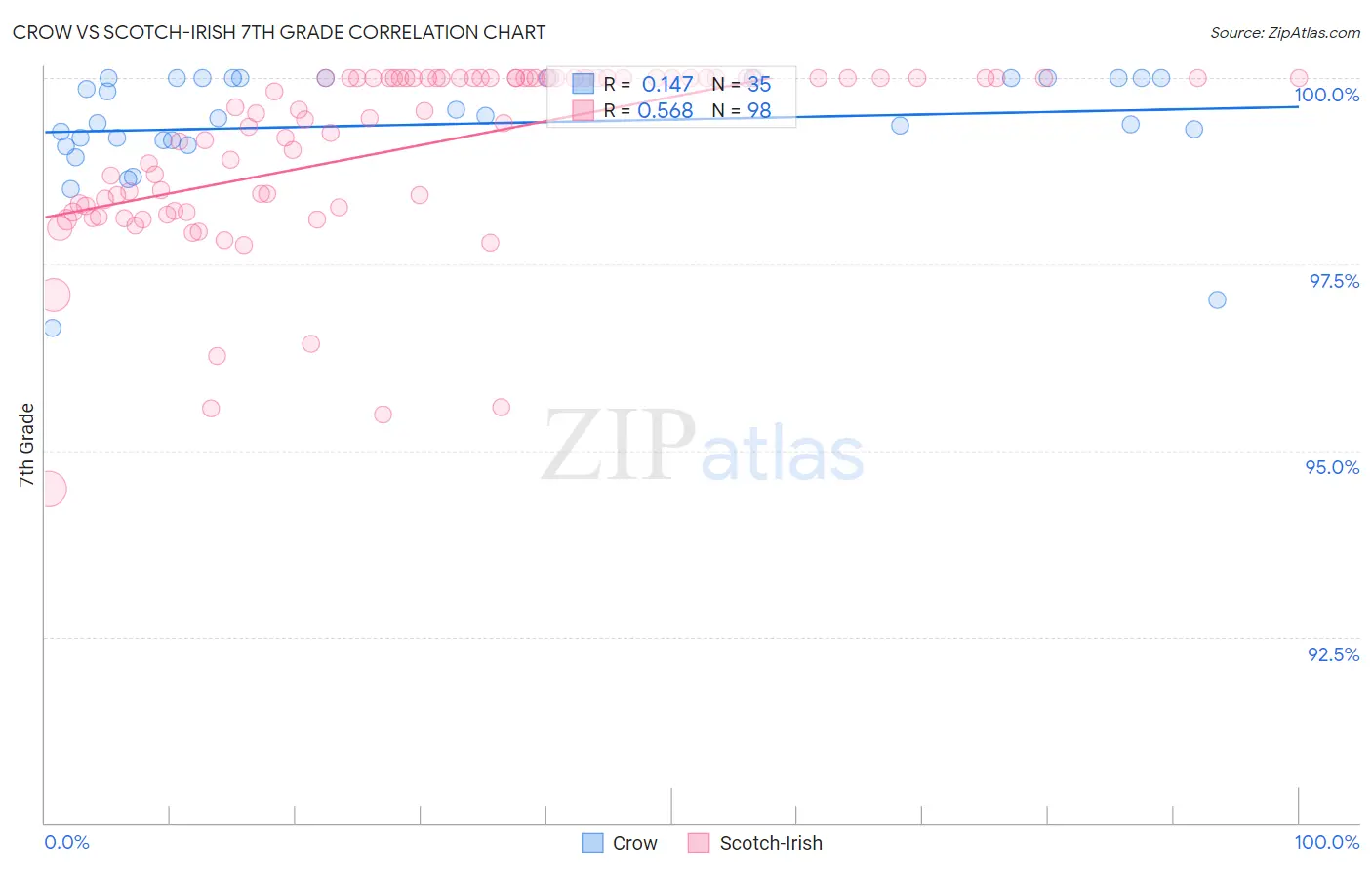 Crow vs Scotch-Irish 7th Grade Correlation Chart