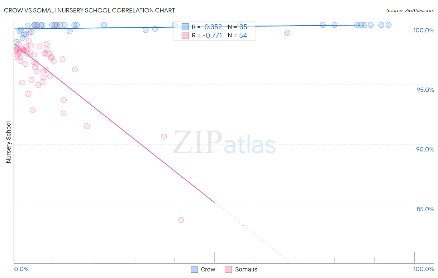 Crow vs Somali Nursery School Correlation Chart