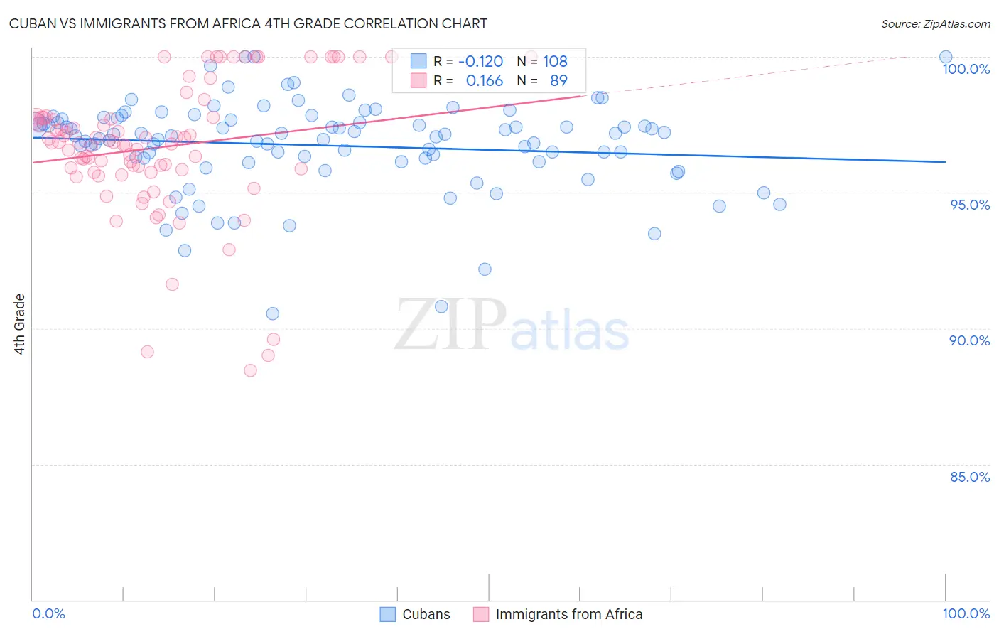 Cuban vs Immigrants from Africa 4th Grade Correlation Chart