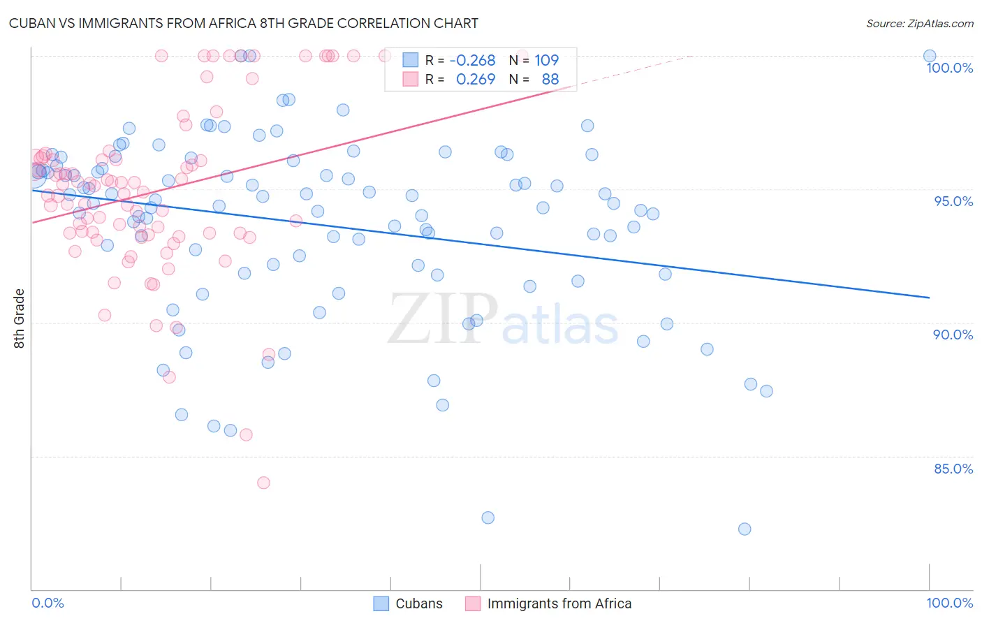 Cuban vs Immigrants from Africa 8th Grade Correlation Chart